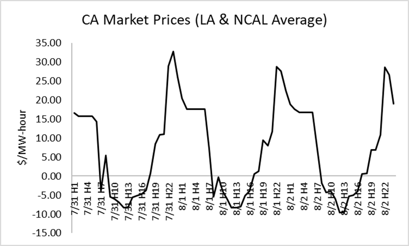 However, enactment of West-wide clean air laws and policies, are leading to a very large buildout of renewable resources, in particular solar generation. Because of the anticipated high amount of new solar generating capability, the magnitude and price of the Southwest market is expected to change. Electricity pricing models show greater amounts of Southwest market supply, with mid-day prices dropping to very low or negative values. This expected change in the out-of-region market means that it will be accessed not only for Northwest adequacy needs but also for economic opportunities when market prices are below regional resource operating costs (including hydro). Market prices are expected to be lowest during the hours after the California morning demand ramp and before its evening ramp (as solar generation diminishes). Highest market prices are expected during a 2-hour morning period and during a 6-hour evening ramp period (see figure below).