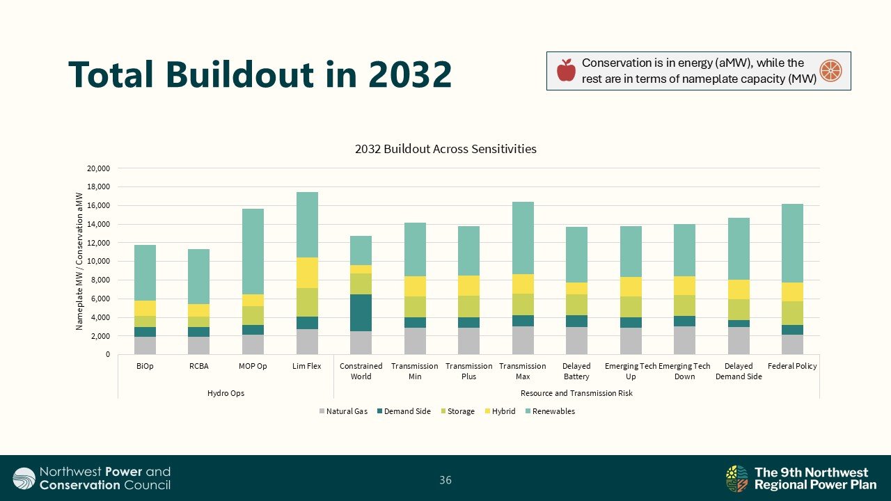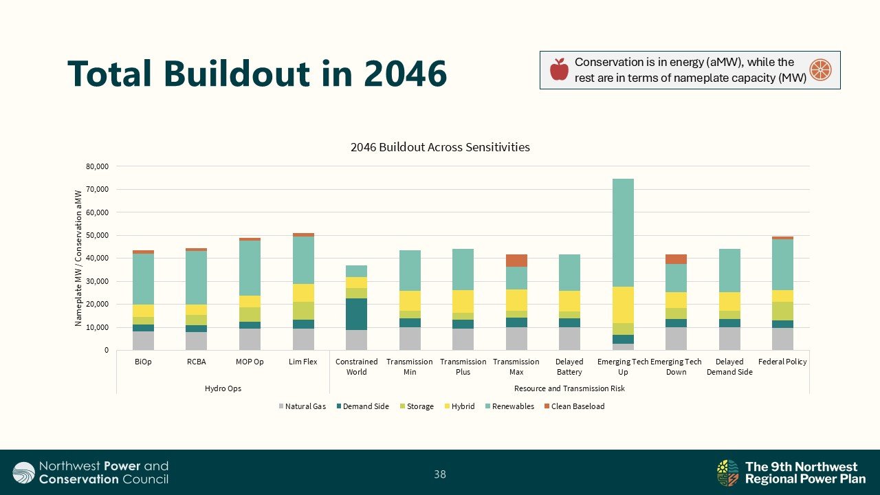 In reviewing analysis of the 13 sensitivity results with the Council, staff explained some of the consistent themes and key takeaways that emerged. The first is that the need for a portfolio of resources is seen throughout the Ninth Plan’s planning horizon of 2027-2046. Its action plan period will be 2027-2032. Under the Northwest Power Act, the Council reviews and updates its power plans on roughly five-year cycles. So, the Council will be developing its next power plan toward the end of this action plan period, in 2030-32.